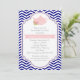 Tea party teapot, chevron pink navy bridal shower invitation
