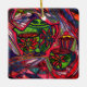 at christmass as a hanging decration for the chritmass tree.. its white porcline or cramic but very well made with added photo on one side.. also has a lovley red bag to keep it in.. execlent printed text in bold and black stands out well aganst the blue background of the photo.