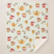 Cute seamless pattern of teapots, teacups, mugs of tea, and fruit jam jars.