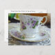 Tea Time - Vintage Queen Anne Violets Fine Bone English China Tea Cup and Saucer Greeting card great for use for invitations birthdays, showers etc.
