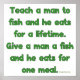 Teach a man to fish and he eats for a lifetime. Give a man a fish and he eats for one meal. Jesus said it. John Galt said it. Ayn Rand said it. Now you're saying it.