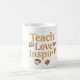 Charming and inspiring “Teach Love Inspire” design featuring warm earthy tones and playful icons – a coffee cup, open book, heart, and lightbulb – arranged around elegant lettering. Perfect for teacher gifts, classroom décor, and back-to-school merchandise. This versatile design looks stunning on mugs, tote bags, notebooks, and apparel