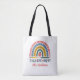 A fun teacher tote bag with a rainbow and the words, teach, love, inspire. Personalise it with your teachers name for a nice teacher appreciation gift. Same design on front and back. Designed for you by Blackberry Boulevard.