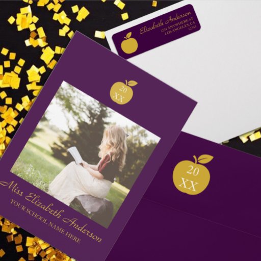 Teacher graduation with apple. Photo template via Pixabay licensed under CC0 and must be replaced with your own photo.