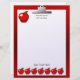 A graphic of a clipboard with paper and red apples by artist/designer Charmaine Paulson on Teacher Letterhead Stationery. The stationery has text templates for your personalisation.