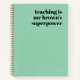 A minimalist notebook for teachers featuring a vintage retro typography "teaching is [teacher's name]'s superpower" in black on a sage green background. The perfect gift for any teacher!