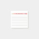 For the teacher. Brighten your desk and stay organised with these charming personalised Post‑it notes — perfect for teachers who love a little personality in their daily routine. Each sticky note features a cheerful pink pencil header with your name displayed clearly, giving every reminder, list, or quick message a warm, personal touch. The clean, spacious lines make writing effortless, whether you’re jotting down parent reminders, classroom tasks, or notes to students. Designed to coordinate beautifully with matching stationery pieces, these post-it notes are both practical and gift‑worthy — a thoughtful treat for yourself or the perfect addition to a teacher appreciation gift.