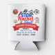 Teacher Appreciation Week All-Star School Name Can Cooler. In colours red, white, and black. Images of sports with a baseball, soccer ball, basketball, and Popcorn. Personalise this with the Appreciation, date, thank you, and school name. Edit it further to make more changes.