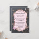 Elegant retirement party invitation with pink on blackboard and rose gold metallic swirls.