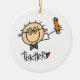 Teacher T-shirts, mugs, magnets, buttons, cards, tote bags, stickers, keepsakes, pillows, cases, and more featuring a male stick figure teacher in a bow tie and eye glasses holding a yellow pencil.