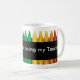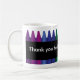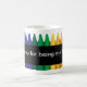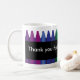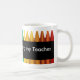 A graphic design of colour crayons and the customisable text Thank you for being my Teacher on a mug. Original artwork/design: Copyright Charmaine Paulson