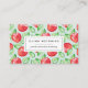 Colorful patterned business cards for teachers, educators, or tutors feature a pattern of red apples and green leaves on a pale mint green background. Personalize the front with two lines of custom text, and add your full contact details to the back. Perfect for remote or distance learning, private instruction, virtual tutoring, education administrators and more.
