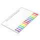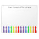 This bright and colourful notepad is designed for a teacher, and has the words: From the desk of ... You can personalize it with any name. The pad is white and decorated with a row of artist brushes along the bottom in rainbow colours. it is funky and fun.