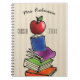 Show appreciation to your favourite teacher with this personalised notebook featuring your teacher's name and class year. Design has a red apple on top of a colourful stack of books and a neutral tan striped background.