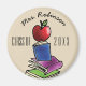 Show appreciation to your favourite teacher with this personalised magnet featuring your teacher's name and class year. Design has a red apple on top of a colourful stack of books and a neutral tan background.