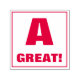 This stamp features the letter "A" and the word "GREAT!". It could be used by teachers, educators or teaching assistants when giving a grade while marking student assignments, quizzes, projects, tests, exams, papers, and other academic works.