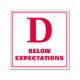 This stamp features the letter "D" and the words "BELOW EXPECTATIONS". It could be used by teachers, educators or teaching assistants when giving a grade while marking student assignments, quizzes, projects, tests, exams, papers, and other academic works.