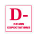 This stamp features the letter "D-" and the words "BELOW EXPECTATIONS". It could be used by teachers, educators or teaching assistants when giving a grade while marking student assignments, quizzes, projects, tests, exams, papers, and other academic works.