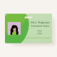 Simple employee identification horizontal badge for teachers and any school staff , featuring part of a big green apple . Personalise it with the educator's photo , name , job title , academic year ,school name and address . The rectangle in the back is for the member's signature or for a bar code . Look into our collection for its vertical version .