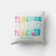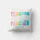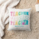 Teacher Modern Rainbow Colours Personalised Name Throw Pillows features the text "Teacher" in modern rainbow colour repeat script typography with your custom personalised name below. Perfect for your favourite teacher for teacher appreciation, birthday, Christmas, holidays and more. Designed by Evco Studio www.zazzle.com/store/evcostudio