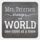 Add teacher name on a white typography script inspired from the quote "Teachers change the world one child at a time" on blackboard background and create a personalised school or teacher library bookplate. It can also be a nice custom thank you keepsake gift for your favourite mentor.