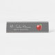 Easy to personalise teacher desk name plate featuring classic white script typography on a stylish grey background complemented with a red apple.