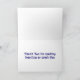 This card is great fun and good quality. I loved the humour inside and on the back. There is the opportunity to change the orientation of this card from landscape to portrait, which I did. It is relatively straightforward to amend the typeface to fit the new orientation. It was well packaged with no plastic. The printing on this card is excellent.
