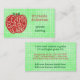 This cute, personalised business card design is perfect for school teachers and anyone who does private tutoring. The apple has a splattered watercolor paint look with the funny words, "Learn Baby Learn." It's designed to look like the hand-drawn typography has been cut into the fruit. The background has a bright green grid pattern.