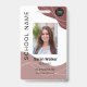 Teacher photo ID of an employee or student Mocco colour Badge. Personalised teacher ID - an elegant identification badge with your school or university logo, photo, name, title, and other details - if required.