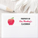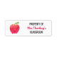 Teacher Property of Classroom Watercolor Red Apple Address Size Small Labels. Mark your school supplies, classroom library books or other important items with pretty personalised teacher labels. These stickers feature a watercolor style bright red apple. Large easy to read font says "Property of" and "Classroom" in black. Personalise with teacher's name in bright red script. All text is editable and may be changed to a student's name or a school name. Fun teacher's gift.