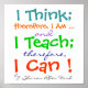 I think the sentiment is clear, yes ... :) Those who think otherwise have never taught. This is also available with space for customisation on my other posters and Teacher Products. Original quotation on teachers' items by Sharon Rhea Ford. Original Teachers' Items (with copyright) by Sharon Rhea Ford ... Copyright:All Rights Reserved Registered:Sat Feb 07 14:31:50 UTC 2009 Fingerprint:Show digital fingerprint e3860c4f5cfa933c3ebf98f88f81c327b937700b9da37b2ee0a333851d36eddb Title:Teaching Quotation Description:I think; therefore, I am, and I teach; therefore, I can. MCN:C9E78-CCFC0-4E856