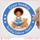 Celebrate student reading success with these cheerful “Great Reading!” award stickers featuring a charming watercolor illustration of Nyla the Reading Explorer™ happily reading a book. Designed especially for teachers, librarians, reading tutors, and homeschool families, these encouraging stickers are perfect for rewarding young readers and celebrating literacy achievements. Use them on homework papers, reading logs, book reports, library checklists, classroom messages, and reading challenge charts to motivate students and build confidence in their reading journey. Personalize the design with a name, classroom title, library name, or short message to create a thoughtful classroom reward or literacy gift for students and book lovers.