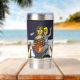 A tumbler with a funny cartoon about retirement. The background, image and text can be customised. Original artwork by W.B.