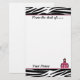 Stationery featuring a zebra print design across top and bottom with pink trim. Personalise with your name. Pink Schoolhouse logo at bottom right