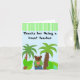 Delight a teacher with this cute thank you card. Teddybear amongst the palm trees and large jungle plants.
