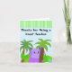 Delight a teacher with this cute thank you card. Purple Hippopotamus amongst the palm trees and large jungle plants. Customise by changing the message as desired.
