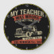 This humourous wall clock playfully refutes a common misconception about truck driving. Against a black background with a warm yellow rim, it features a semi-truck silhouette in white with red banner accents. The witty text proclaims: "MY TEACHER WAS WRONG I DO GET PAID TO STARE OUT THE WINDOW ALL DAY". It's a lighthearted gift for any truck driver who enjoys the scenic aspects of their long hauls. The design tool can also be used to add custom text if you want your name or company on this clock. You can customise the colour of the frame to any colour you desire by going into the design tool.