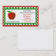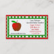This business card is perfect for any teacher. It features a red apple on the left side and the teachers information on the right side. It is surrounded with a green and white checked boarder then a red boarder.