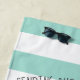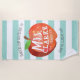 A fun and lighthearted seafoam green striped beach towel featuring a stylised apple illustration. Inside of this apple is your favourite teacher's name in a playful style font. A great way to show thank you to a great teacher.