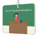Let the teacher (or teachers) in your life know how much you appreciate them with this customisable air freshener. A busy teacher sits at her desk in front of a chalk board twirling the Earth on her finger. The text reads, "Teachers Make the World Go Round", but you can change it to your own message.