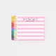 A vertical row of rainbow coloured pencils hugs the left side of this booklet and has pale pink horizontal lines next to it. Whimsical typography fonts in black make provision for the teachers name and reads "from the desk of". Change the colour of the background to any of your choice.