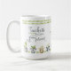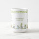 Teacher's Mug with cute watercolor design and ornate calligraphy. The template is set up ready for you to personalize the mug with your name or custom text. (Sample wording reads "[name's] favorite mug", which you can edit as you wish.) The teacher quote reads "Teachers plant seeds that grow forever" and is lettered in grey and olive green typography. The lettering is bordered with green bamboo and adorable potted plants in the shape of a koala, panda, moose, cat and hare. Please browse our store for coordinating personalized teacher gifts.