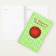 Teacher's daily / monthly planner done in a whimsical green and white polka dot pattern, with graphics of a big red patterned apple, on the front. Personalise the red text to suit your needs.