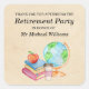 Honour your favourite teacher with this charming Retirement Party Thank you stickers featuring a vintage old-paper background and nostalgic watercolor illustrations of books, a globe, and an apple—perfect symbols of a life dedicated to education. The elegant serif font adds a modern vintage touch, with the front displaying the heartfelt message "Enjoy the Retirement Party" alongside customisable name. Ideal for school staff organising a meaningful farewell for a retiring teacher, these stickers are as memorable as the career it celebrates.