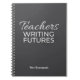This simple yet elegant teacher notebook features a sophisticated grey background the text with “Teachers” in flowing white script and “writing futures” in a refined serif font, creating a timeless and motivational design that celebrates the awesome impact educators make every day—perfect as a thoughtful gift for teacher appreciation, birthdays, holidays, or any special occasion.