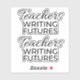 This simple yet elegant teacher sticker features the text with “Teachers” in flowing black script and “writing futures” in a refined serif font, creating a timeless and motivational design that celebrates the awesome impact educators make every day—perfect as a thoughtful gift for teacher appreciation, birthdays, holidays, or any special occasion.