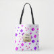 Personalize this lovely bag with an all over print featuring playful hearts and cubes. A center gold rectangle shares a 'teaching message' Treat yourself or personalize for one of your teacher friends.