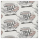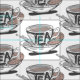 An illustration of a teacup on a china saucer, with a cooker or biscuit and a teaspoon. A picture for tea lovers, drawn in a retro style with halftones.
