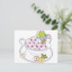 A little grey mouse and his teddy bear are asleep in a teacup.