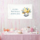 Pretty little teacup with blue and yellow flowers springtime or summer birthday party banner personalised with the name of the guest of honour. Contact me for assistance with your customisations or to request additional matching or coordinating Zazzle products for your party.